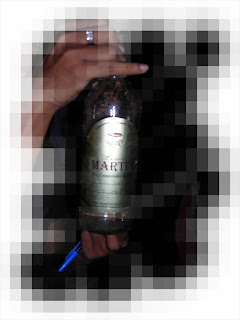 Arak ini berjenama MARTIN dan mengandungi 40% alcohol. Tidak tertulis pula di mana arak ini dibuat. Ini kali pertama ana jumpa botol arak jenama MARTIN, agak berbeza dari yang pernah ana jumpa sewaktu turun lapangan di sekitar kedah.